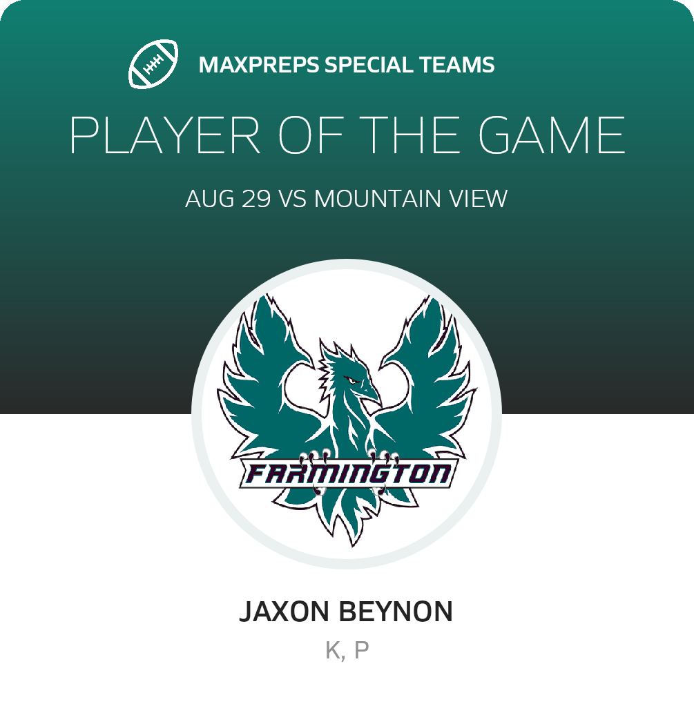 August 29, 2025: Farmington, UT 84025 In Friday's non-league match, the host Farmington Phoenix football squad scored a close 10-7 victory over the Mountain View Mavericks.