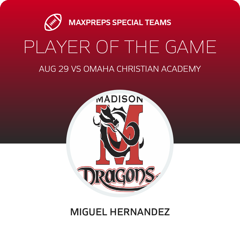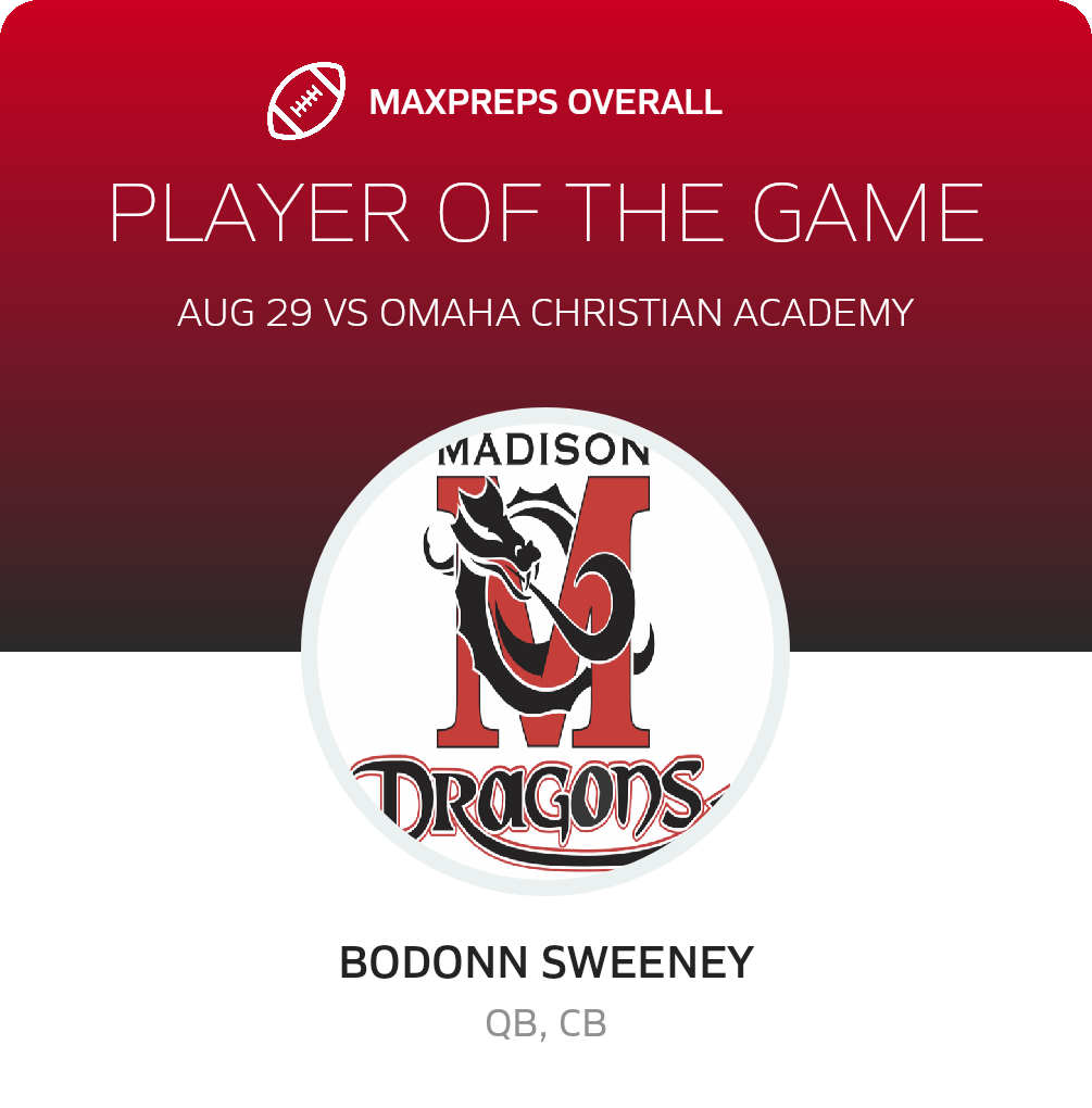 August 29, 2025: Madison, NE 68748 The Omaha Christian Academy Guardians felled the host Madison Dragons football team by a score of 42-30 in Friday's non-league challenge.