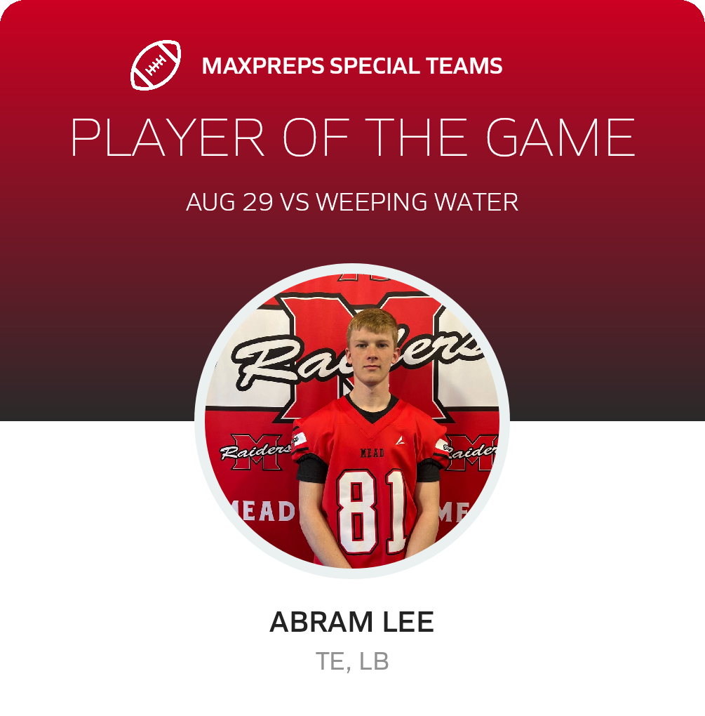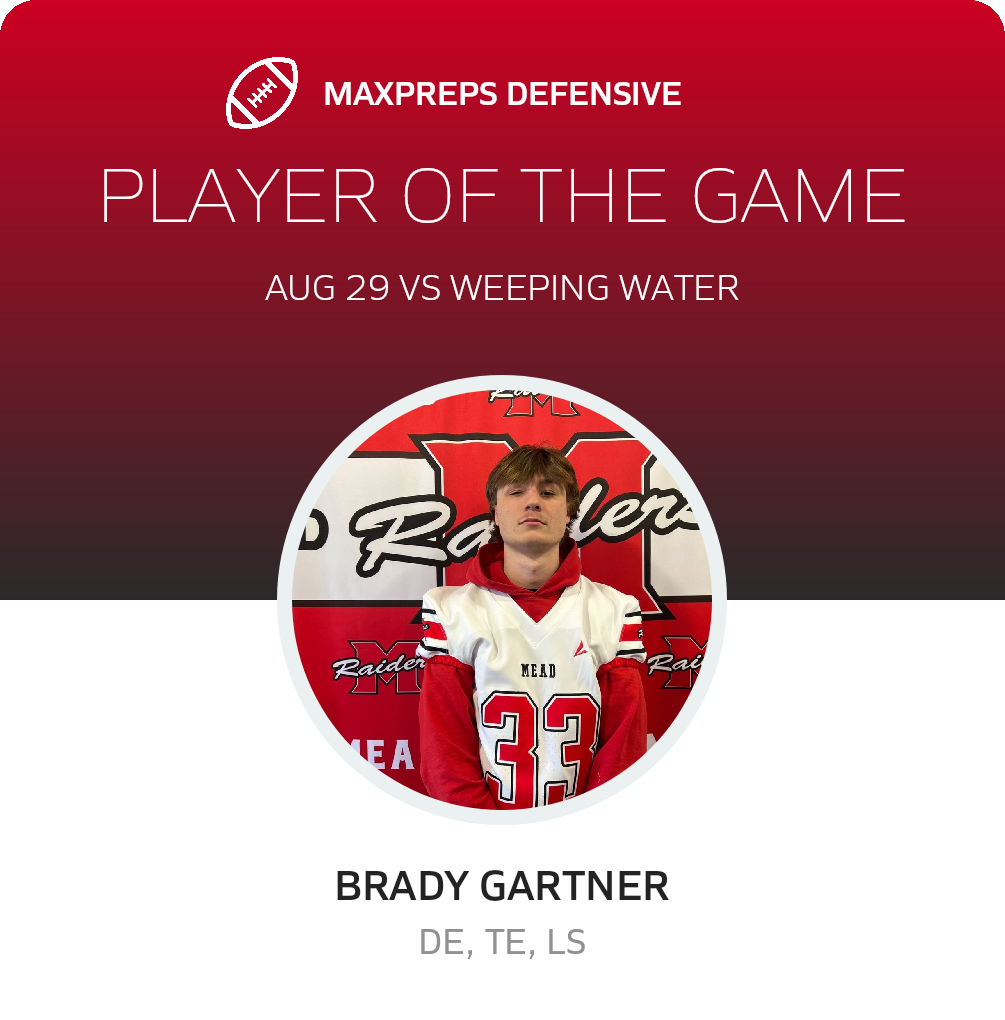 With the win, Mead advances its record to 1-0 on the season. The Raiders travel to David City (David City, NE) to play the Scouts in a non-league battle on Friday, September 5. The Scouts go into the battle with a record of 1-0. David City won 54-20 in their recent non-league battle against Centennial (Utica, NE)