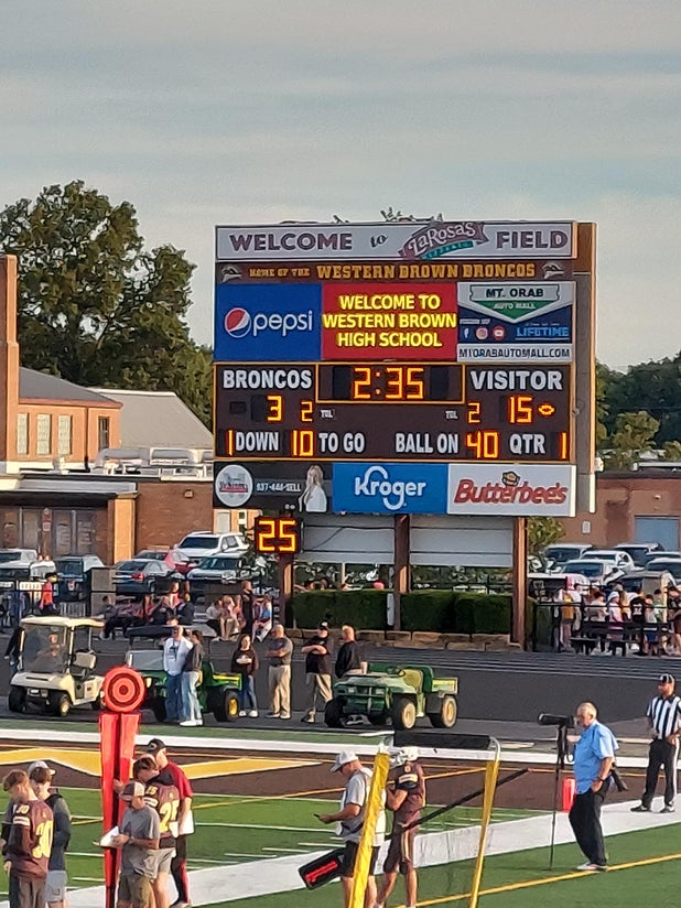 August 29, 2025: Mt. Orab, OH 45154 In Friday's non-league game, the Simon Kenton Pioneers (Independence, KY) football team overcame the host Western Brown Broncos (Mt. Orab, OH), by a margin of 43-24.