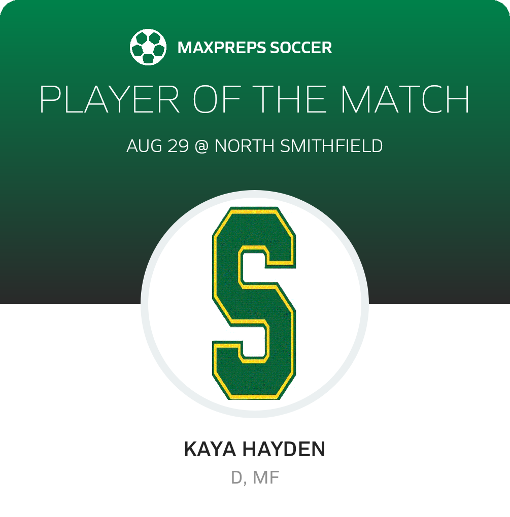 Congratulations to #22 Kaya Hayden for being selected the Smithfield Girls Soccer Player of the Match.