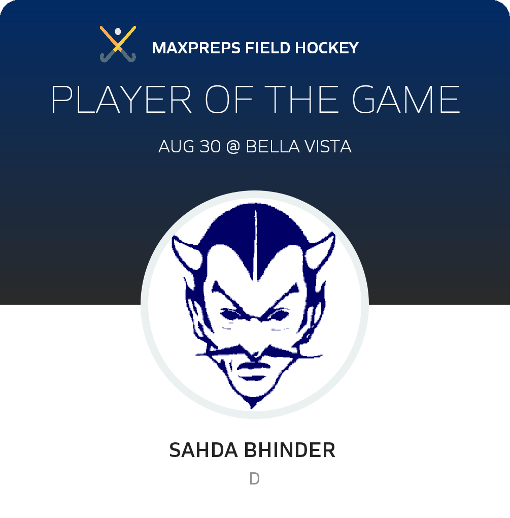 Congratulations to #4 Sahda Bhinder for being selected the Davis Sr. Field Hockey Player of the Game.