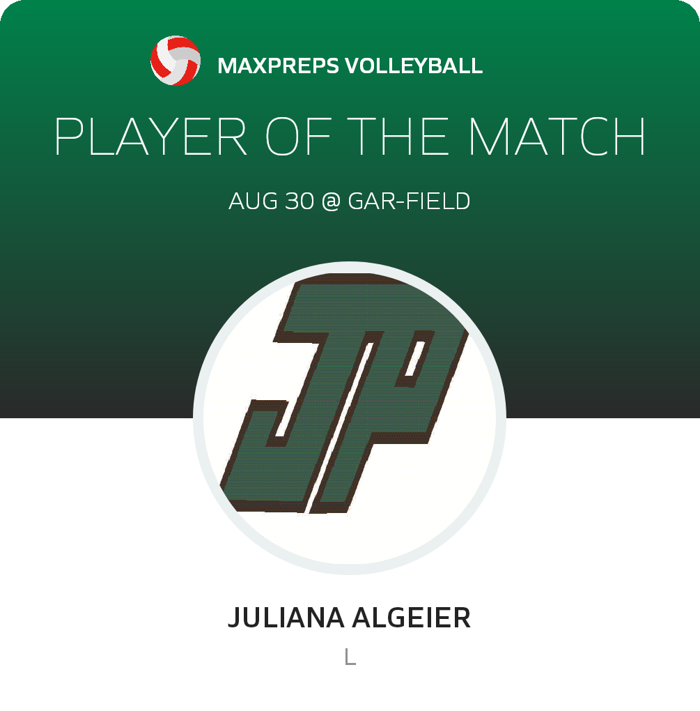 Congratulations to #20 Julianna Algeier for being selected the Saint John Paul the Great Catholic Freshman Volleyball Player of the Match.