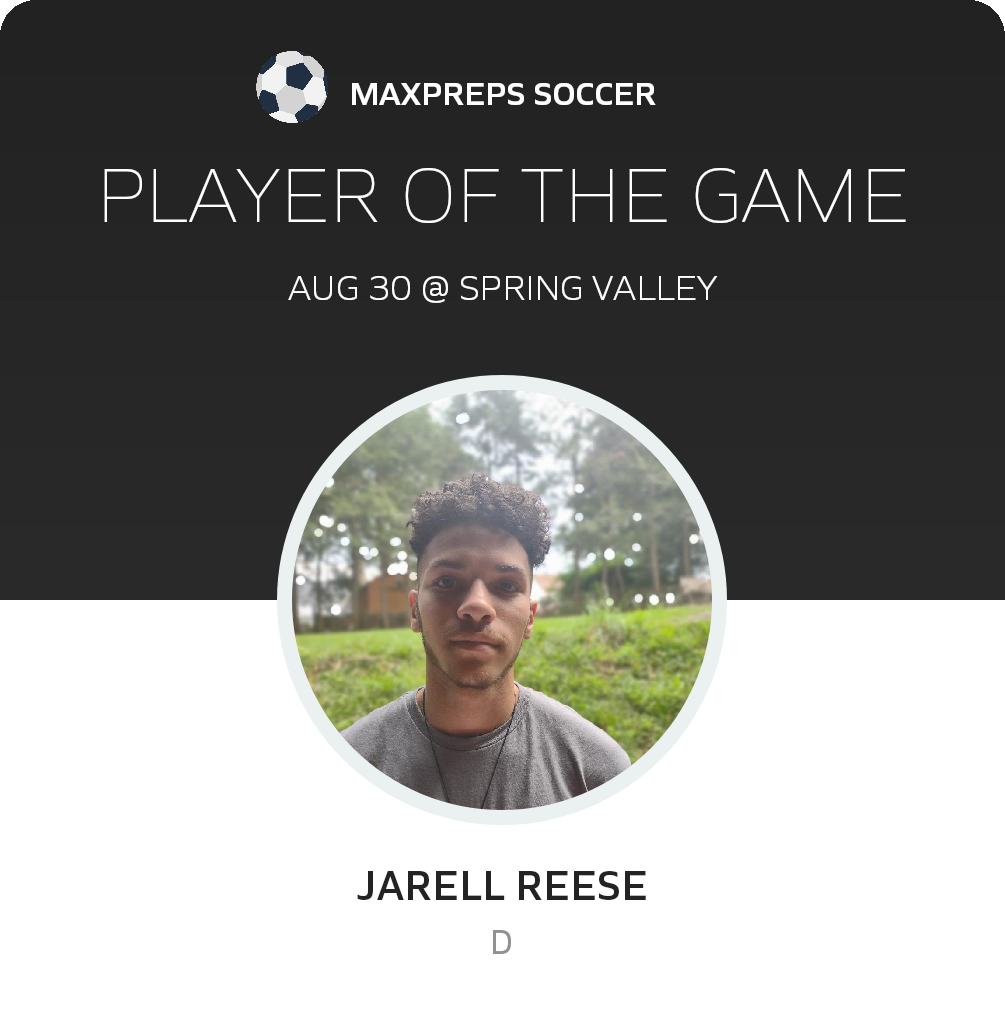 Congratulations to #25 Skyler Ball for being selected the Spring Valley Soccer Player of the Match.