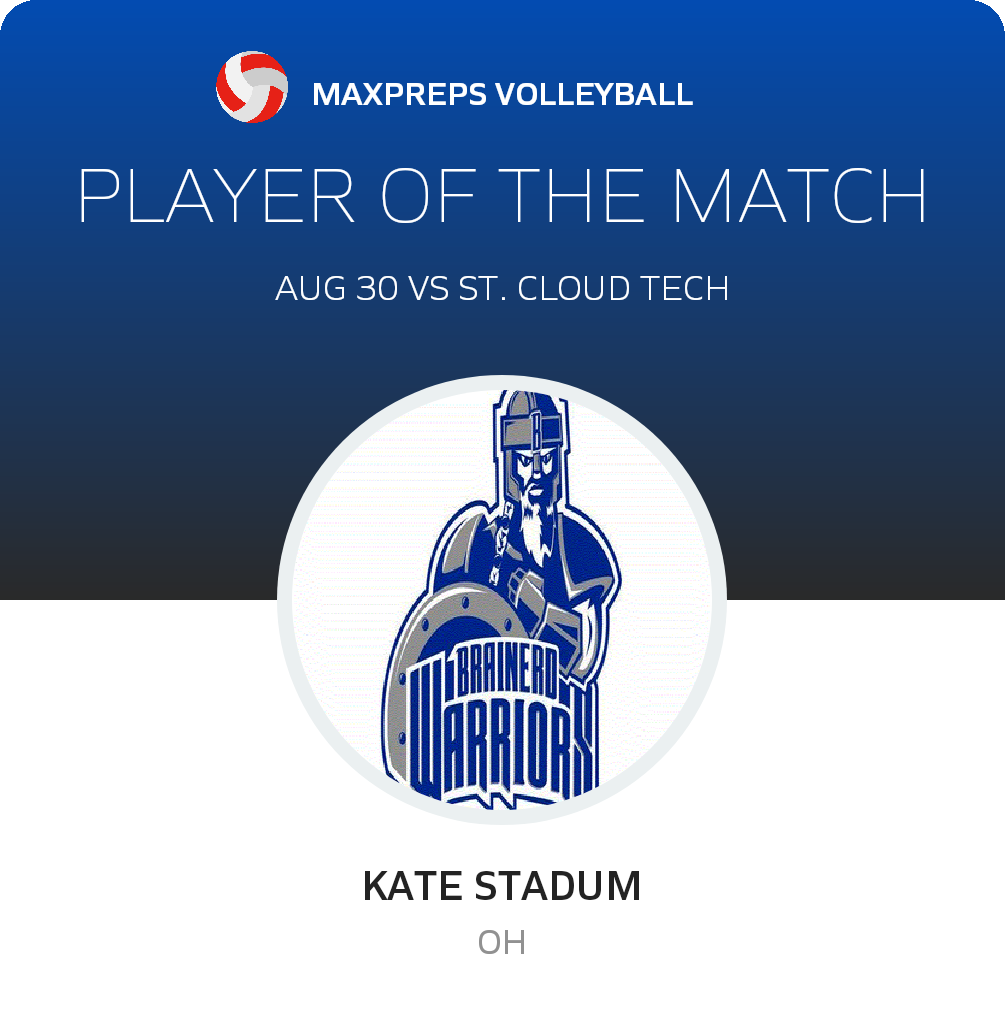 With the win, Brainerd upgrades its record to 1-0 on the year. The Warriors travel to Sartell-St. Stephen (Sartell, MN) to face the Sabres in a Central Lakes outing on Thursday, September 1. The Sabres go into the outing with a record of 0-1. Sartell-St. Stephen lost 3-2 in their recent non-league outing against Elk River (Elk River, MN)