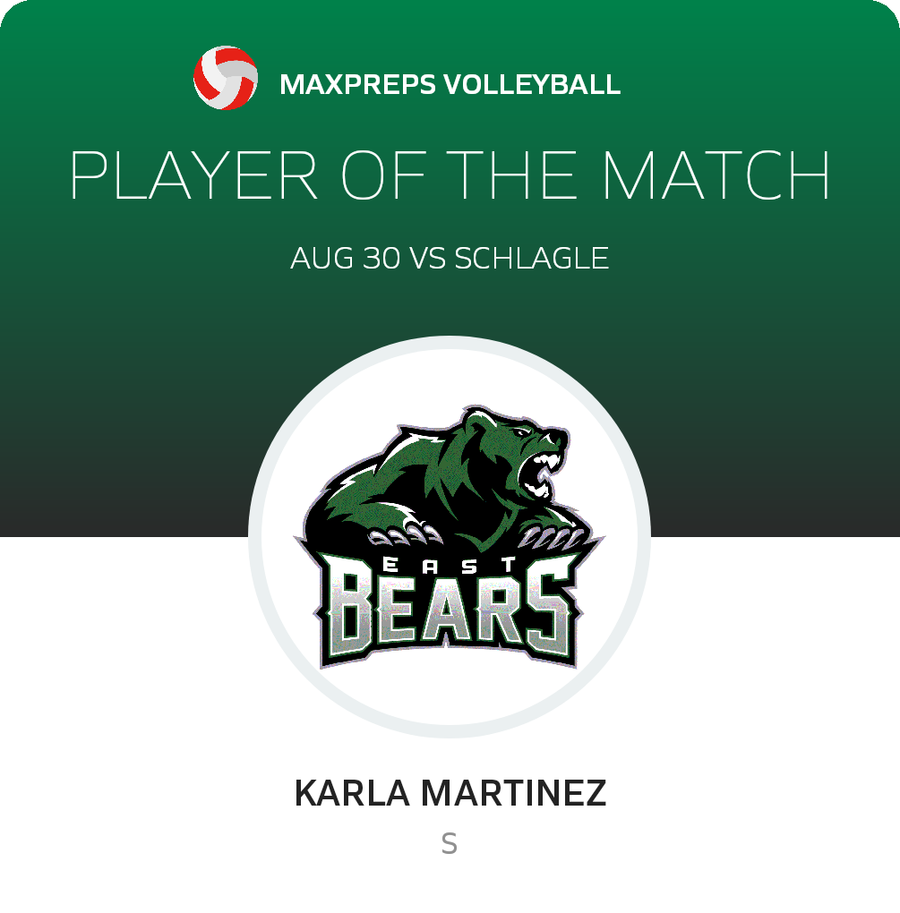 Congratulations to #13 Karla Martinez for being selected the East Volleyball Player of the Match.