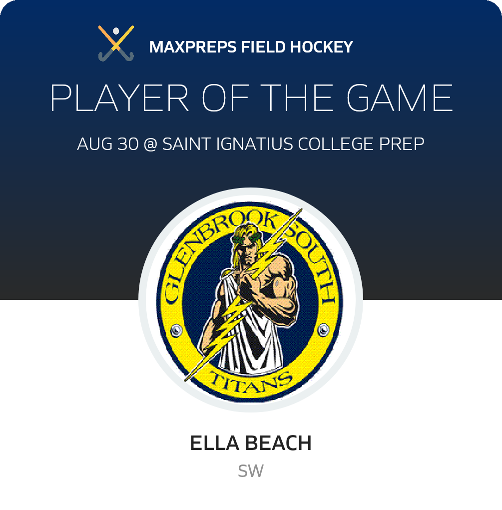 Congratulations to #1 Ella Beach for being selected the Glenbrook South Field Hockey Player of the Game.