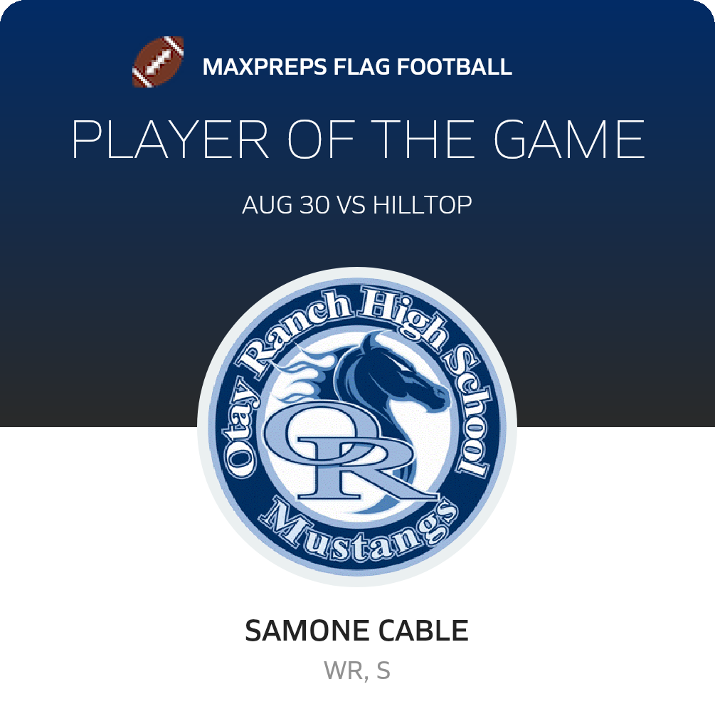 Congratulations to #1 Samone Cable for being selected the Otay Ranch Girls Flag Football Player of the Game.