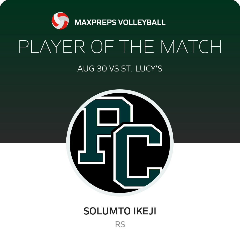 Congratulations to #30 SOLUMTO IKEJI for being selected the Pomona Catholic Volleyball Player of the Match.
