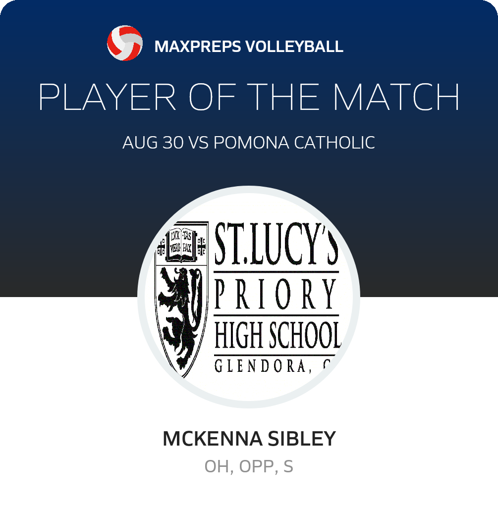 Congratulations to #7 McKenna Sibley for being selected the St. Lucy's Volleyball Player of the Match.