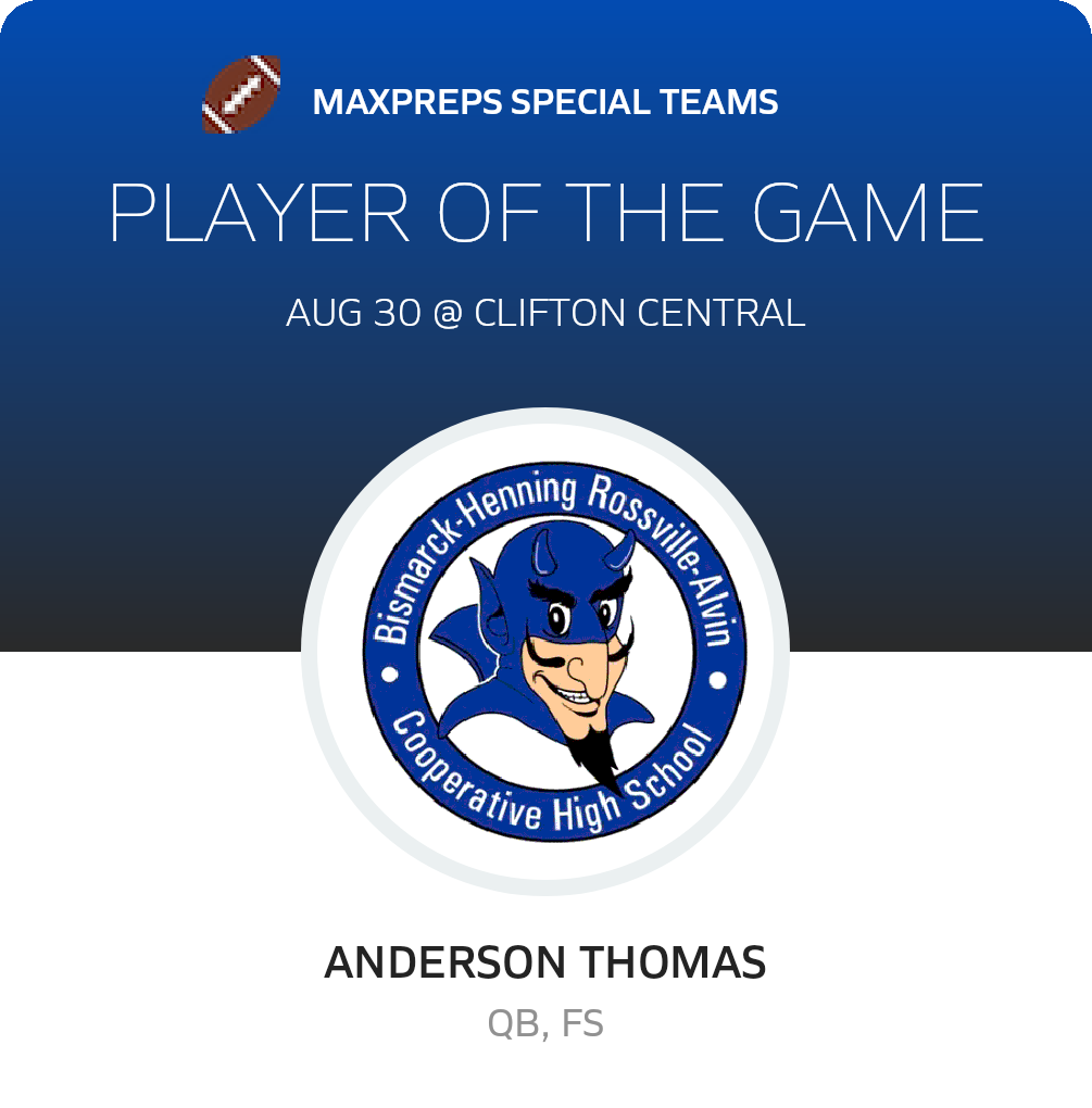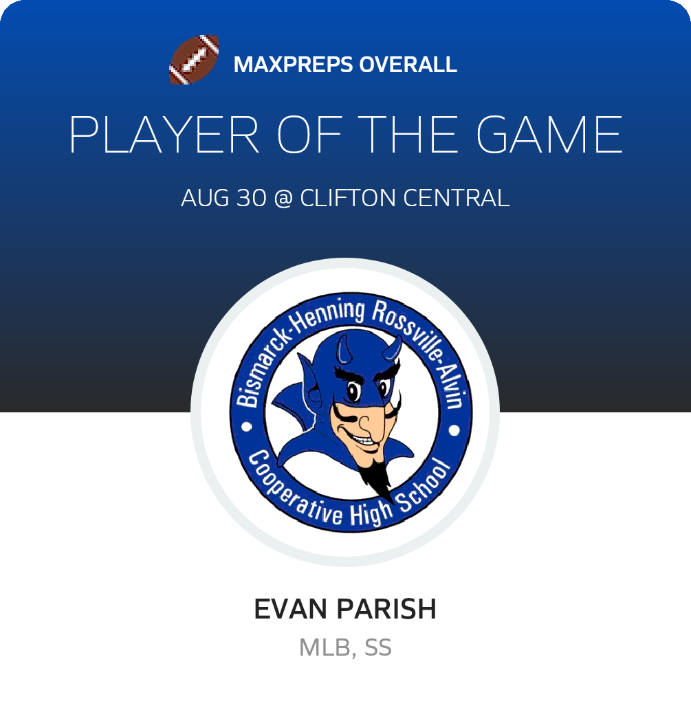 In their next game, the Blue Devils play the Westville Tigers (Westville, IL) in a Vermilion Valley challenge, on Friday, September 6. Bismarck-Henning/Rossville-Alvin will attempt to improve on its 1-0 season record. The Tigers go into the challenge with a 0-2 record after their 16-14 league loss to Salt Fork (Sidell, IL).