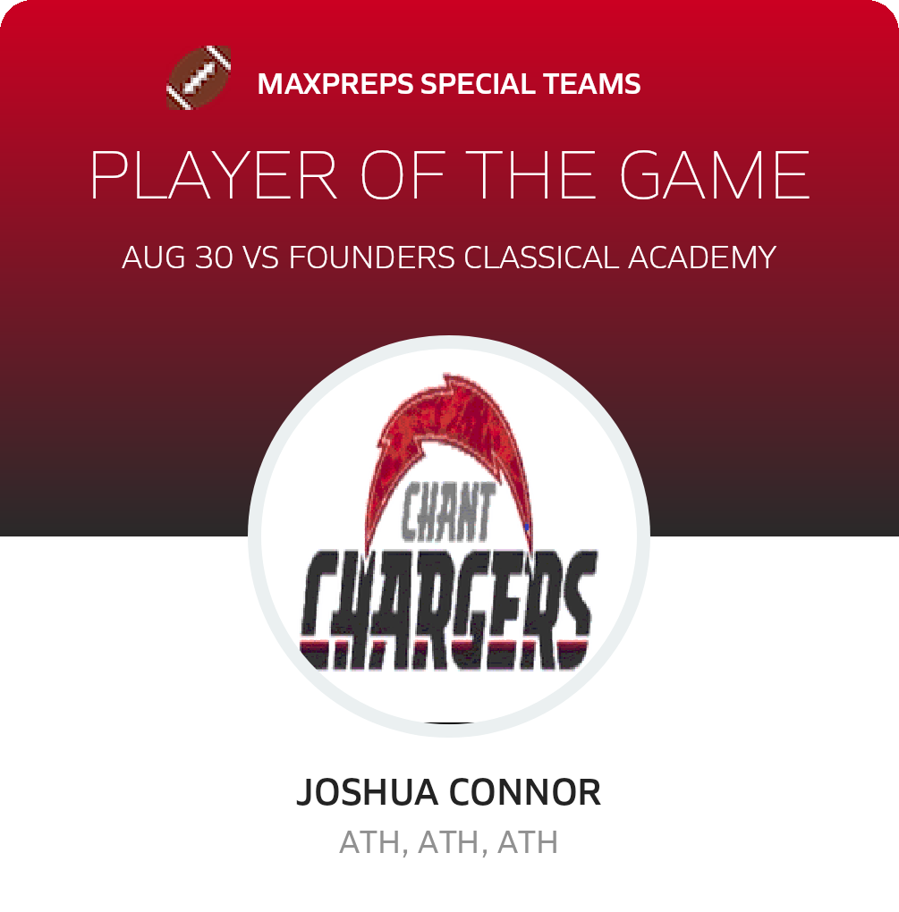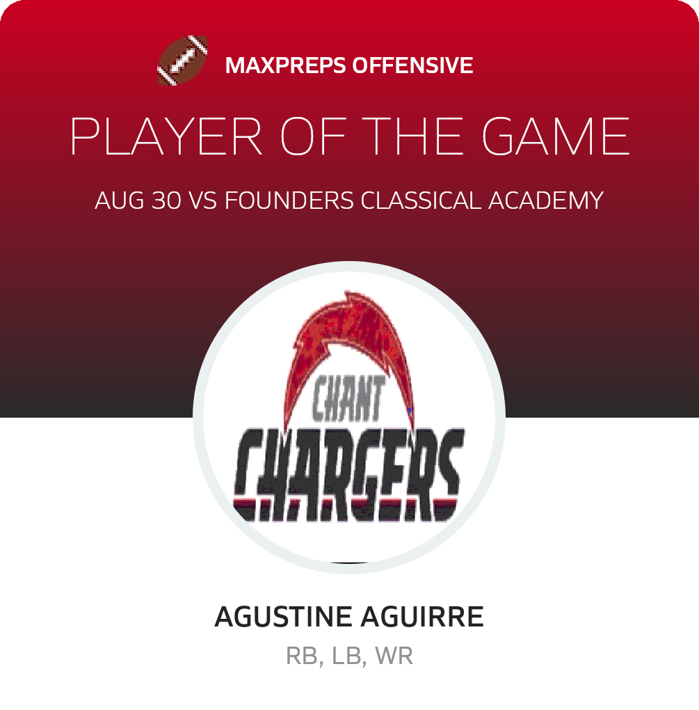 Congratulations to #5 Augustin Aguirre (offensive), #3 Caedmon Bray (defensive) and #17 Joshua Connor (special teams) for being selected the CHANT HomeSchool Football Players of the Game.
