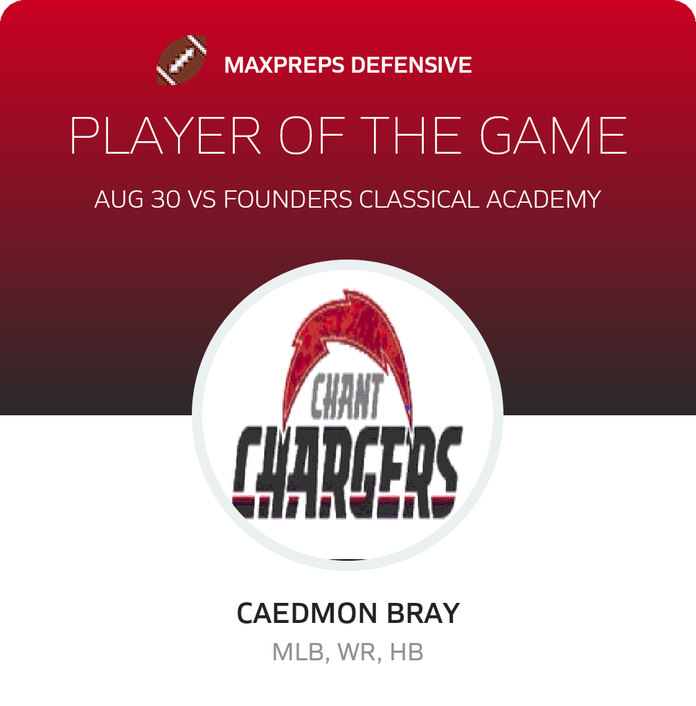 The CHANT HomeSchool (Dallas, TX) varsity football team won Friday's home non-conference game against Founders Classical Academy (Mesquite, TX) by a score of 46-0.