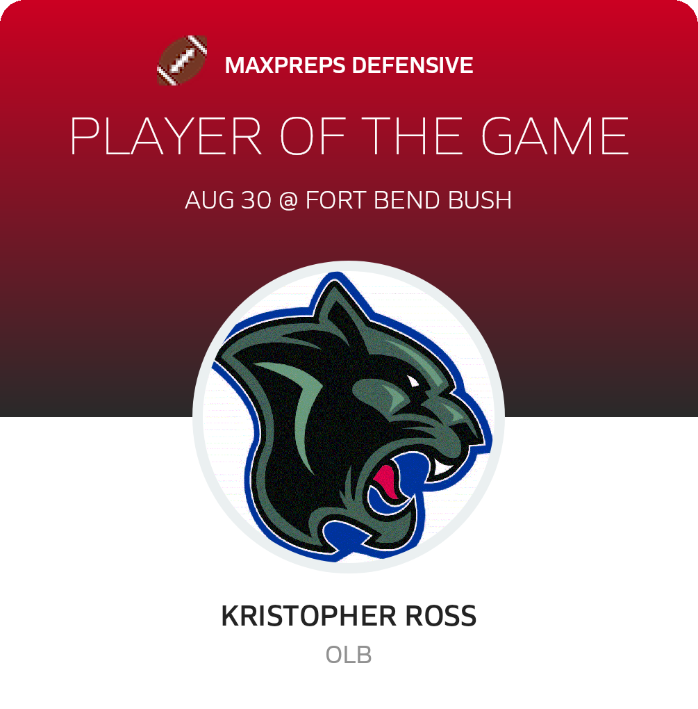 August 30, 2024: Richmond, TX 77469 In Friday's non-league game, the Cypress Springs Panthers (Cypress, TX) football team triumphed over the host Fort Bend Bush Broncos (Richmond, TX), by a tally of 49-7.