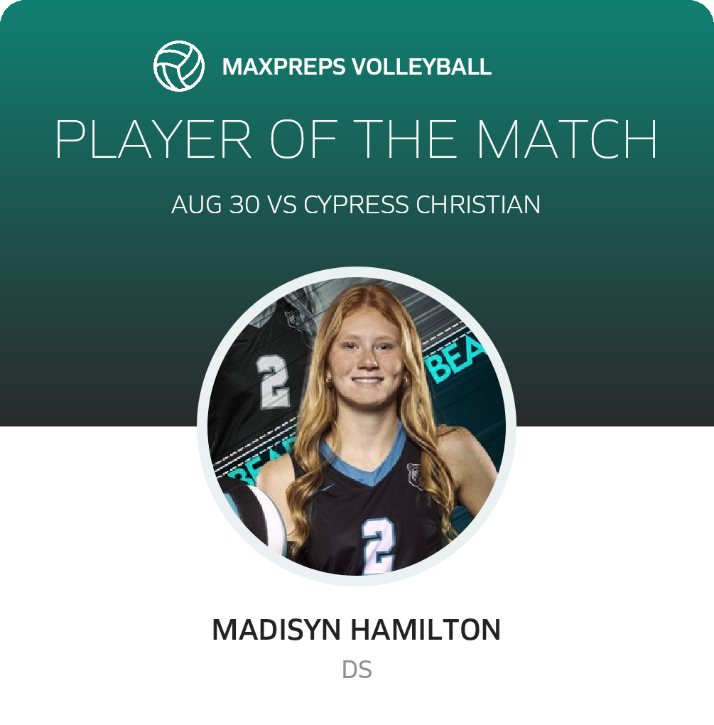 August 30, 2025: Houston, TX 77065 In Saturday's non-league match, the Cypress Christian Warriors (Houston, TX) volleyball squad tipped the visiting Bayside Bears (Palm Bay, FL), by a count of 2-1.