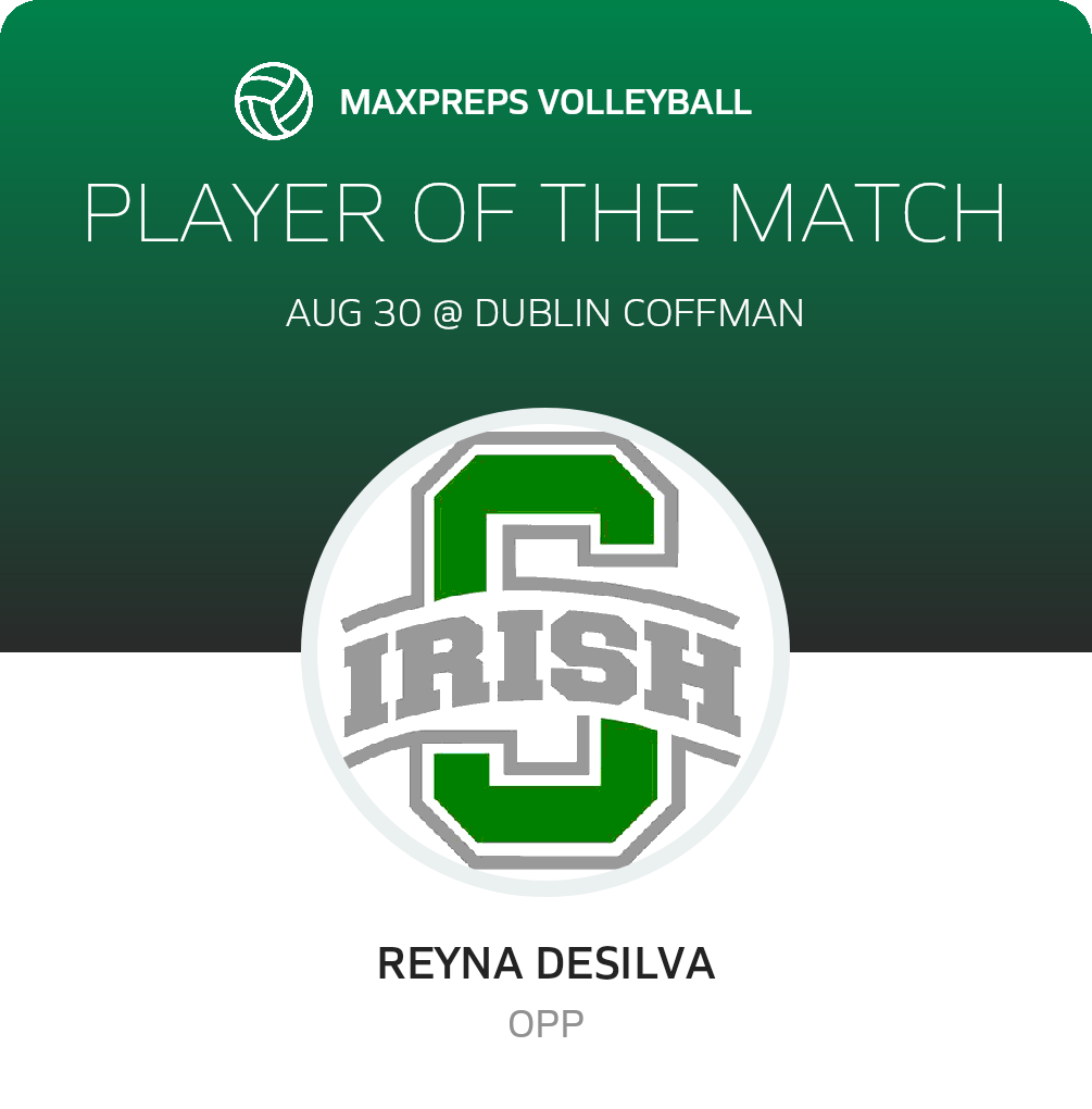 August 30, 2025: Dublin, OH 43017 Dublin Scioto Irish (Dublin, OH) boosters left the game thrilled Saturday as they saw their volleyball squad achieve victory over the host Dublin Coffman Shamrocks (Dublin, OH), 2-0 in a non-league challenge.