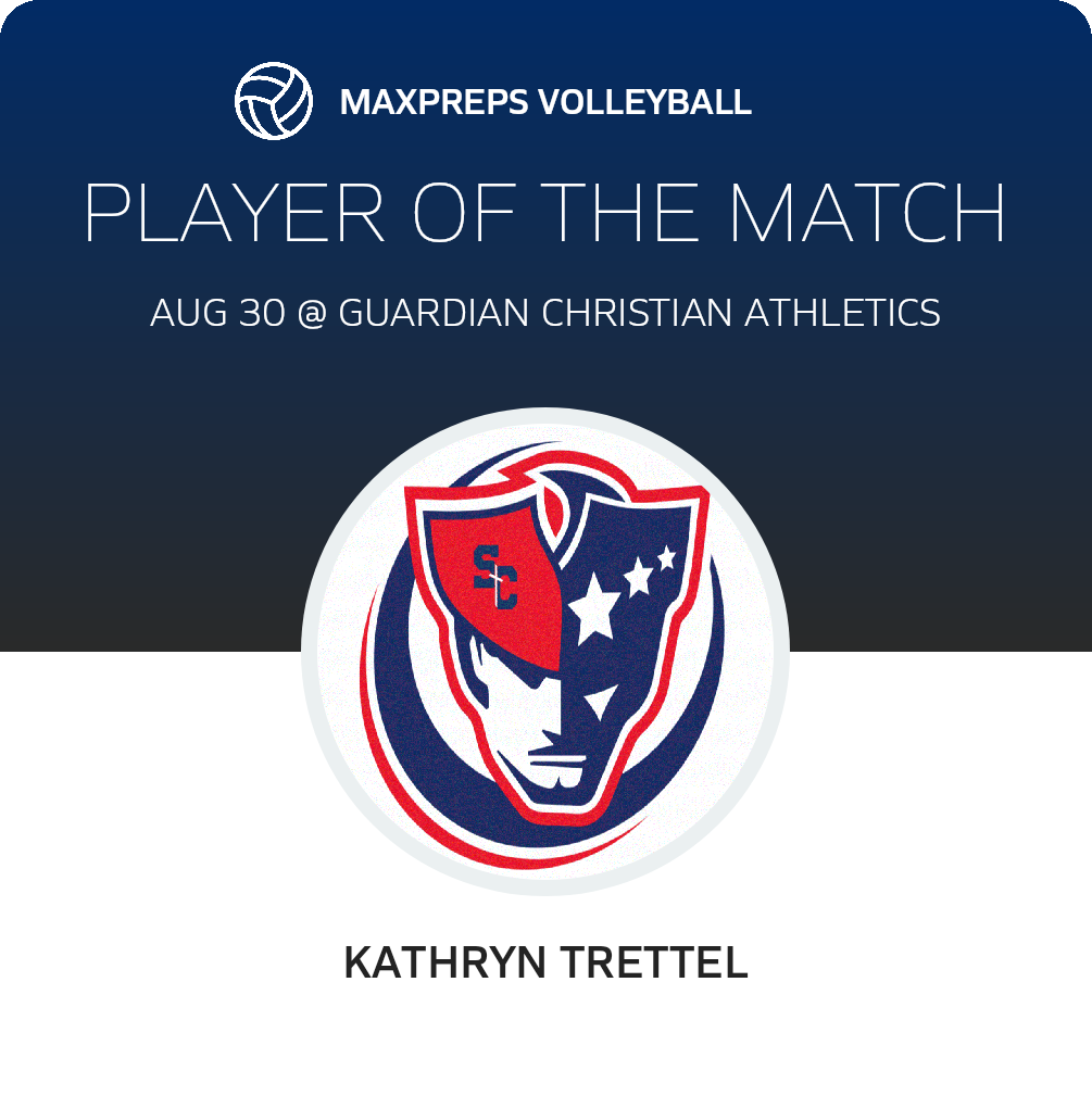 In the second game of a double header in Andalusia the home standing Guardian Christian Angels fell in 3 straight sets to the visiting Southern Christian Patriots. Kathyrn Trettel on a strong overall performance was named player of the match.