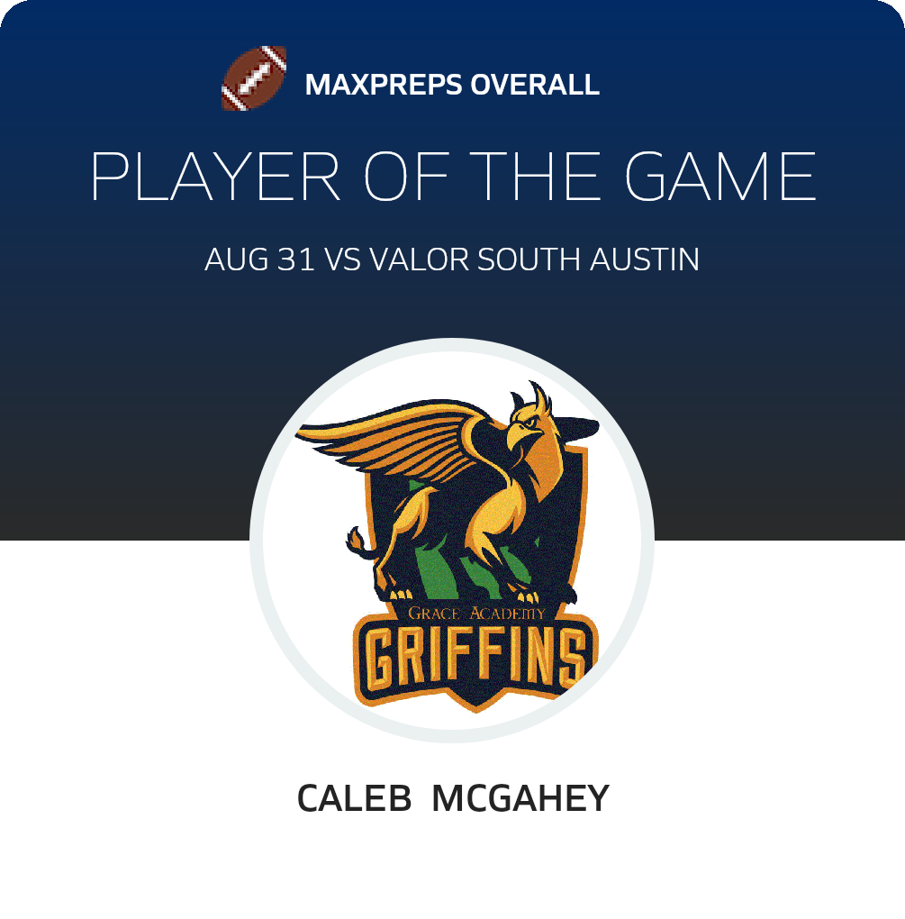 August 31, 2023: Georgetown, TX 78633 The Valor South Austin Falcons football squad scored 31 points and restricted the host Grace Academy to 14 in the Falcons non-league victory on Thursday.