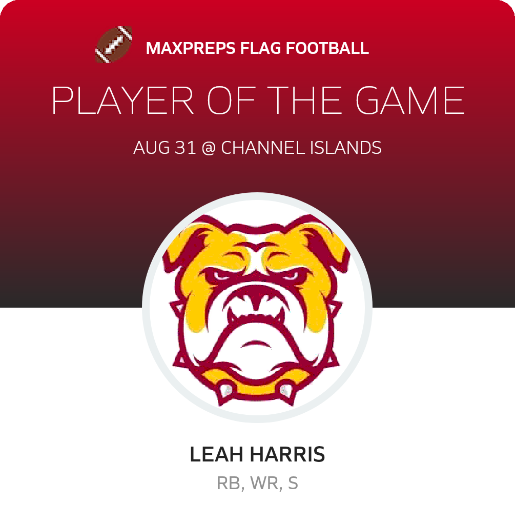 Congratulations to #4 Leah Harris for being selected the Highland Girls Flag Football Player of the Game.
