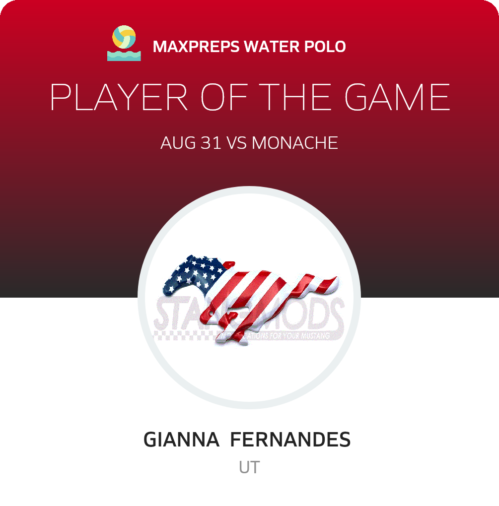 Congratulations to #11 Gianna Fernandes for being selected the Tulare Western Girls Water Polo Player of the Game.