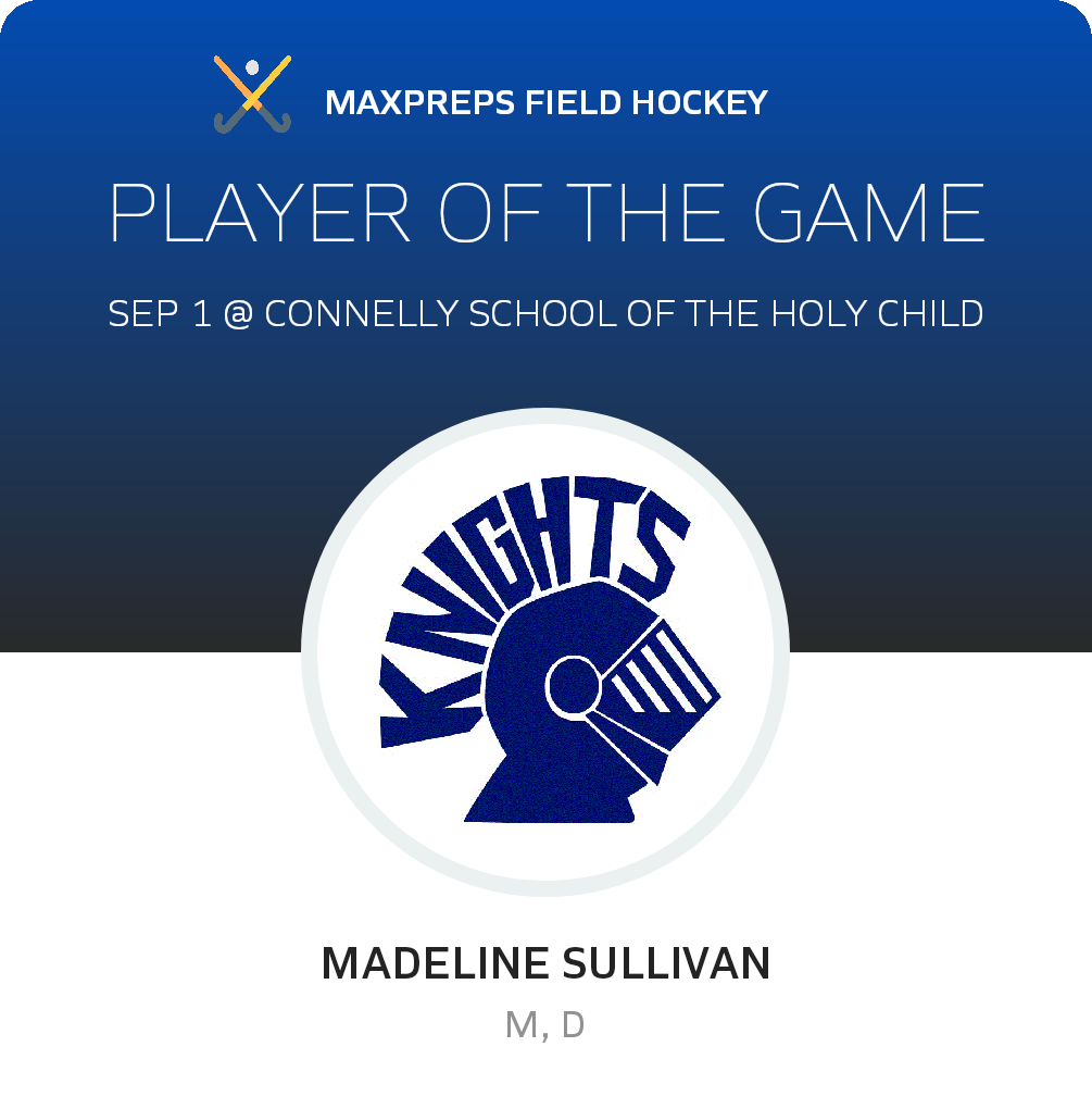 Congratulations to #1 Madeline Sullivan for being selected the Bishop O'Connell Field Hockey Player of the Game.