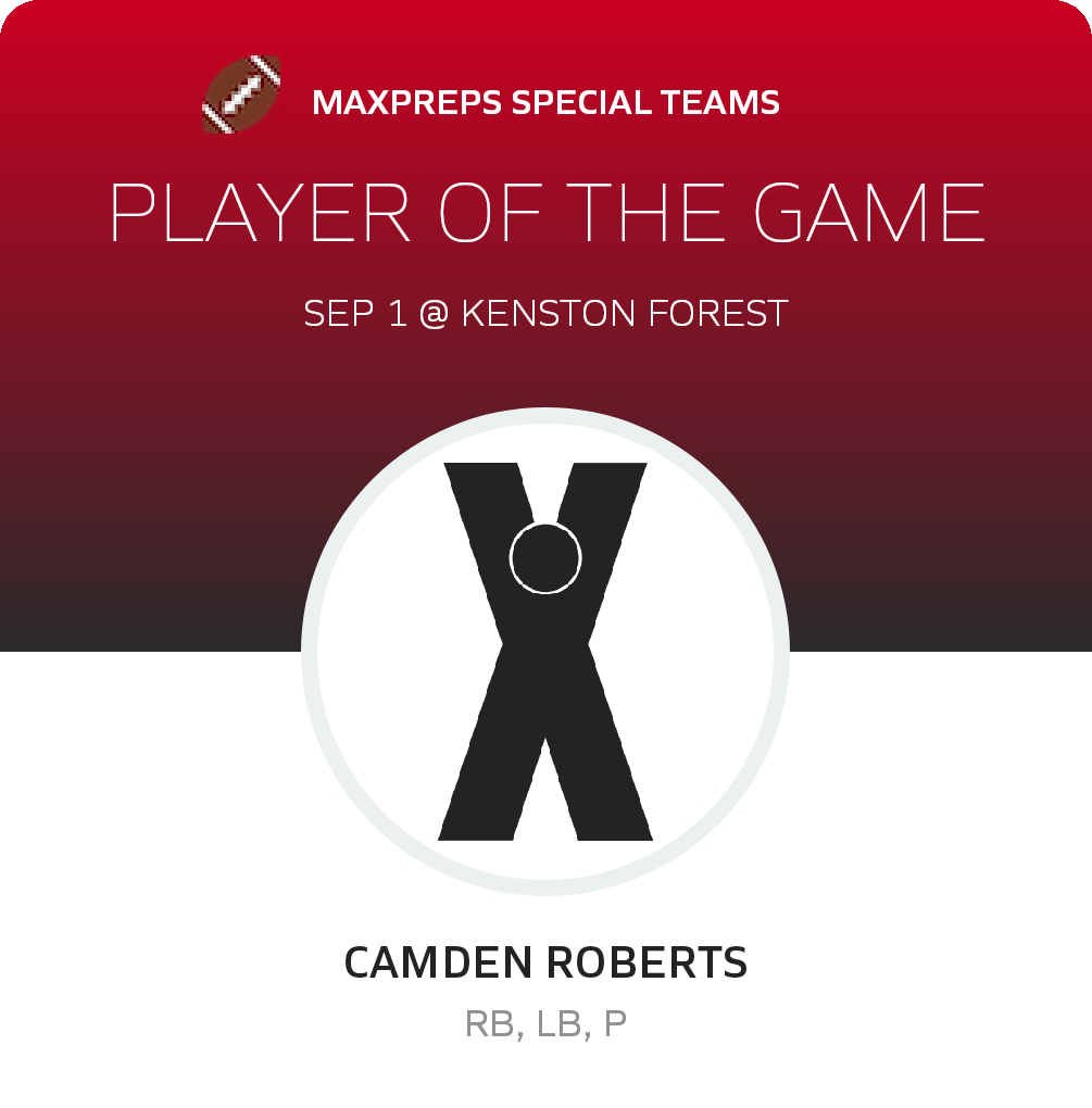 September 1, 2022: Blackstone, VA 23824 In Thursday's league game, the Kenston Forest Kavaliers (Blackstone, VA) football team smashed the visiting Quantico Warriors (Quantico, VA), by a score of 45-8.