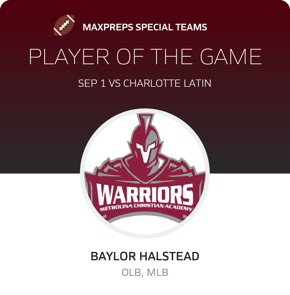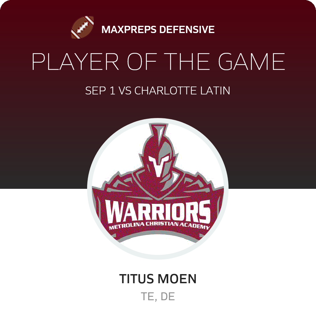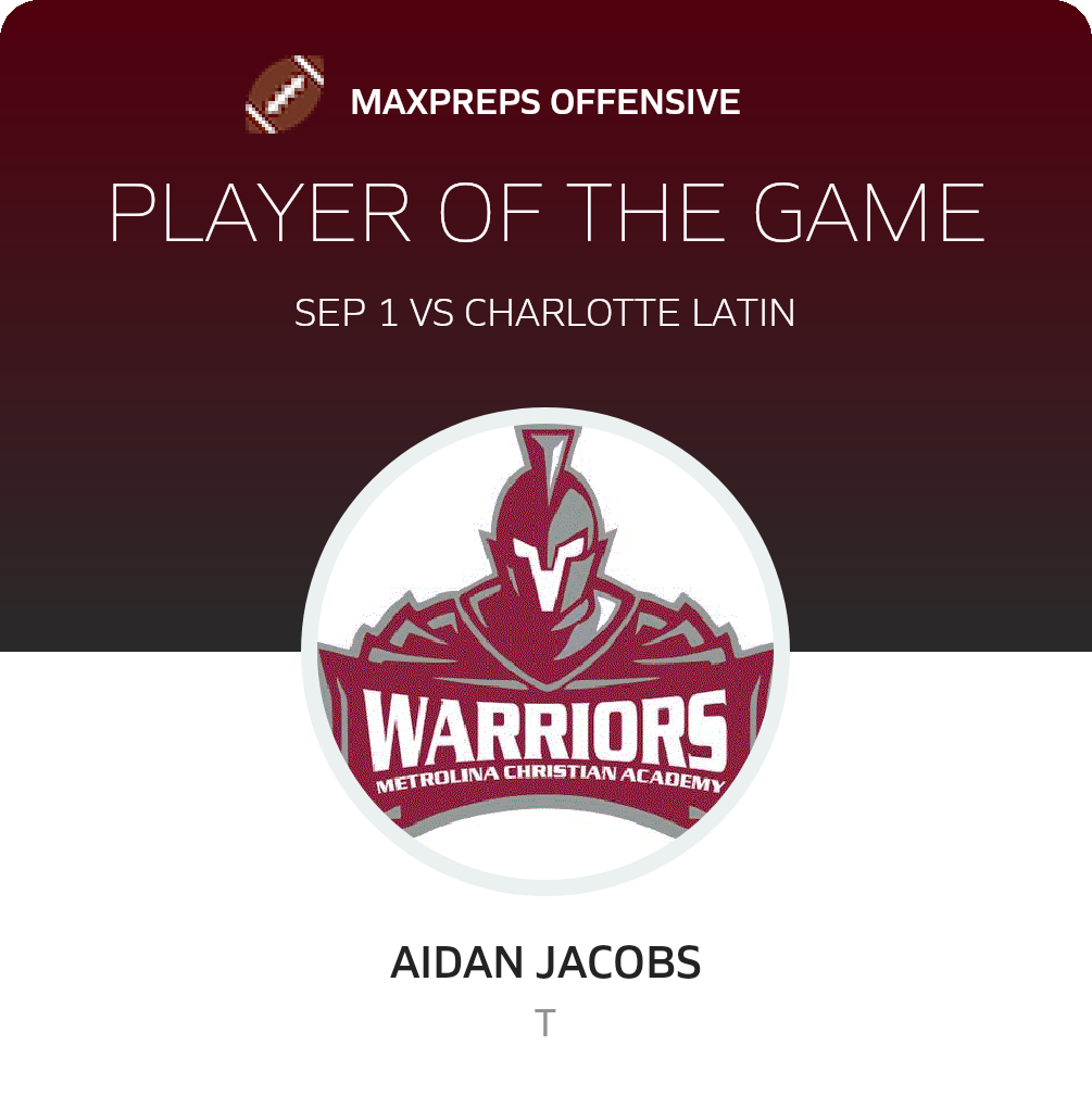 September 1, 2023: Indian Trail, NC 28079 The Metrolina Christian Academy Warriors walloped the visiting Charlotte Latin Hawks football team by a count of 35-0 in Friday's non-league outing.