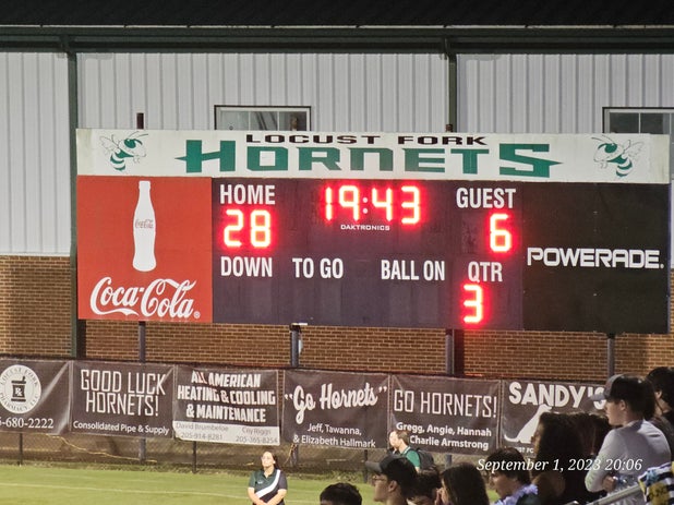 September 1, 2023: Locust Fork, AL 35097 The Pennington Tigers football team (Blountsville, AL), was knocked off 42-20 in Friday's non-league challenge with the host Locust Fork Hornets (Locust Fork, AL)
