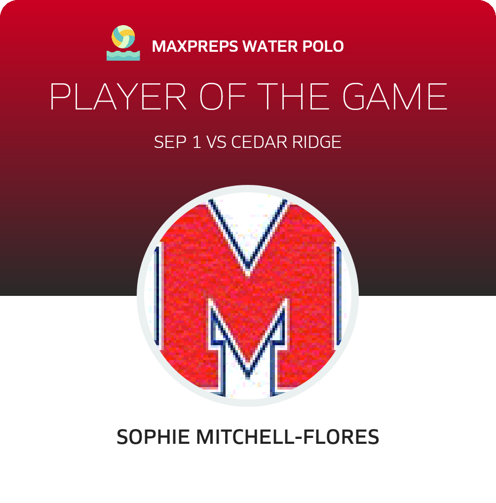 Congratulations to #7 Sophie Mitchell-Flores for being selected the Midway Girls Water Polo Player of the Game.