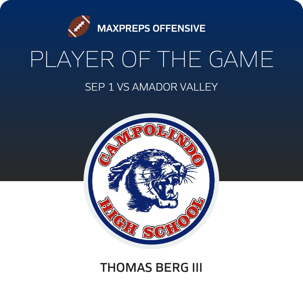 September 1, 2023: Moraga, CA 94556 The Amador Valley Dons football team (Pleasanton, CA), was beaten 34-13 in Friday's non-league challenge with the host Campolindo Cougars (Moraga, CA)