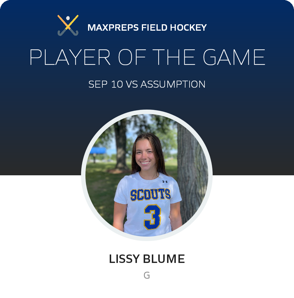 Congratulations to #33 Lissy Blume for being selected the Lake Forest Field Hockey Player of the Game.