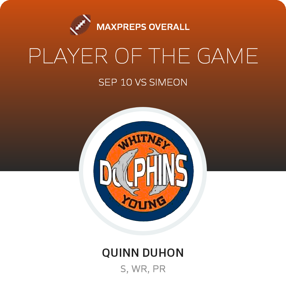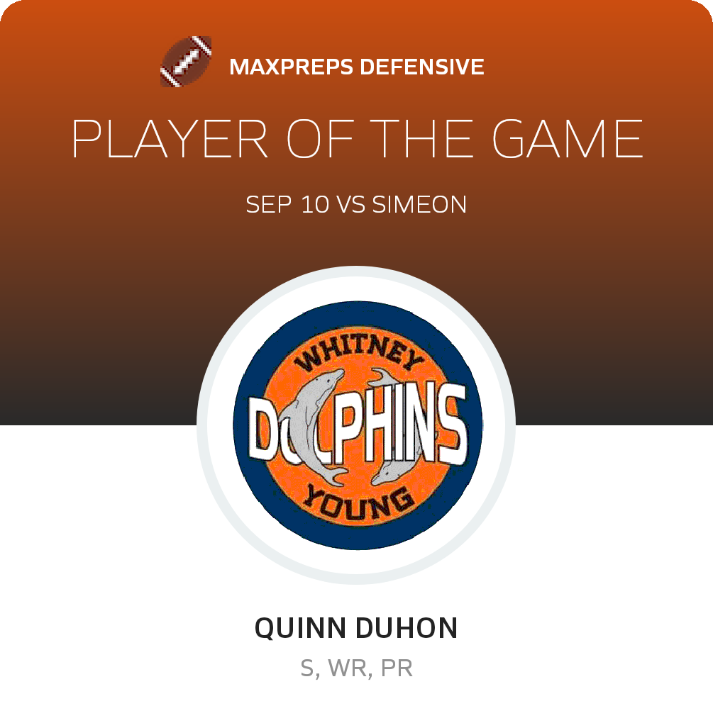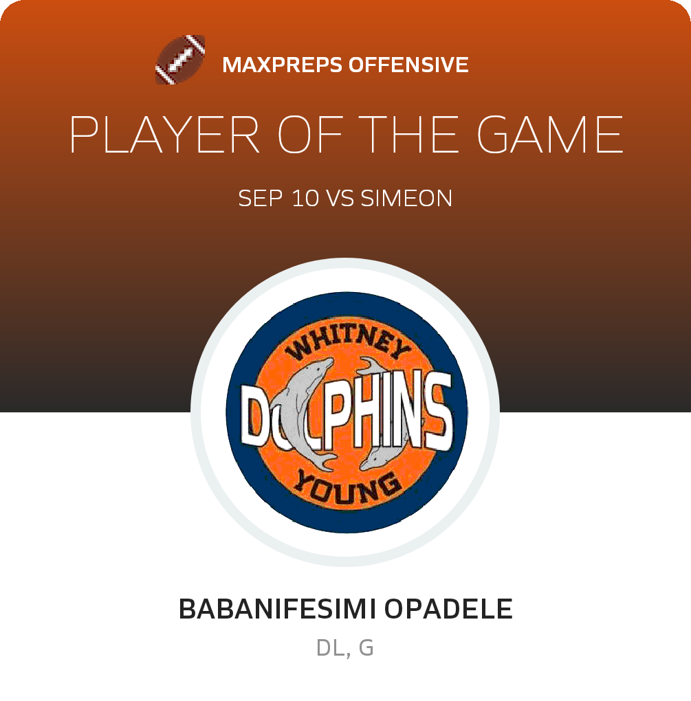 Coming up next, the Dolphins play the Clark Prep/Douglass (Chicago, IL) in a Chicago Public - Red North contest, on Friday, September 16. Whitney Young will attempt to upgrade on its 1-2 season record. The go into the contest with a 2-1 record after their 26-6 non-league win over Brooks (Chicago, IL).