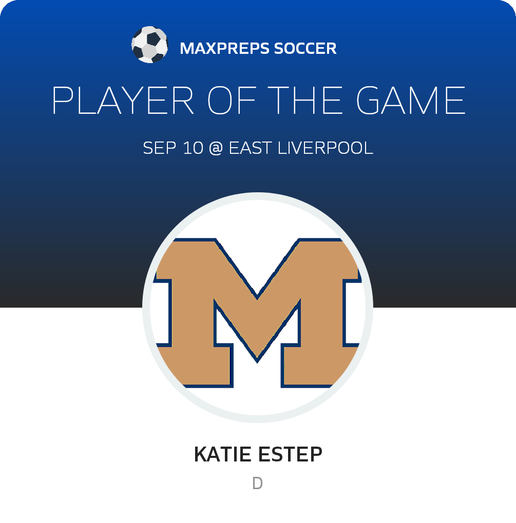 Congratulations to #7 Katie Estep for being selected the Magnolia Girls Soccer Player of the Match.