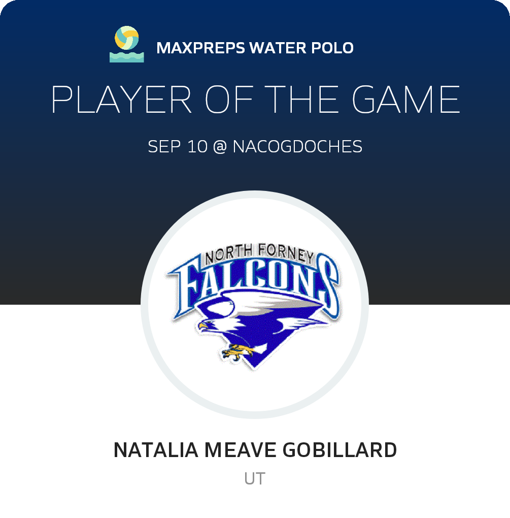 Congratulations to #3 Natalia Meave Gobillard for being selected the North Forney Girls Water Polo Player of the Game.