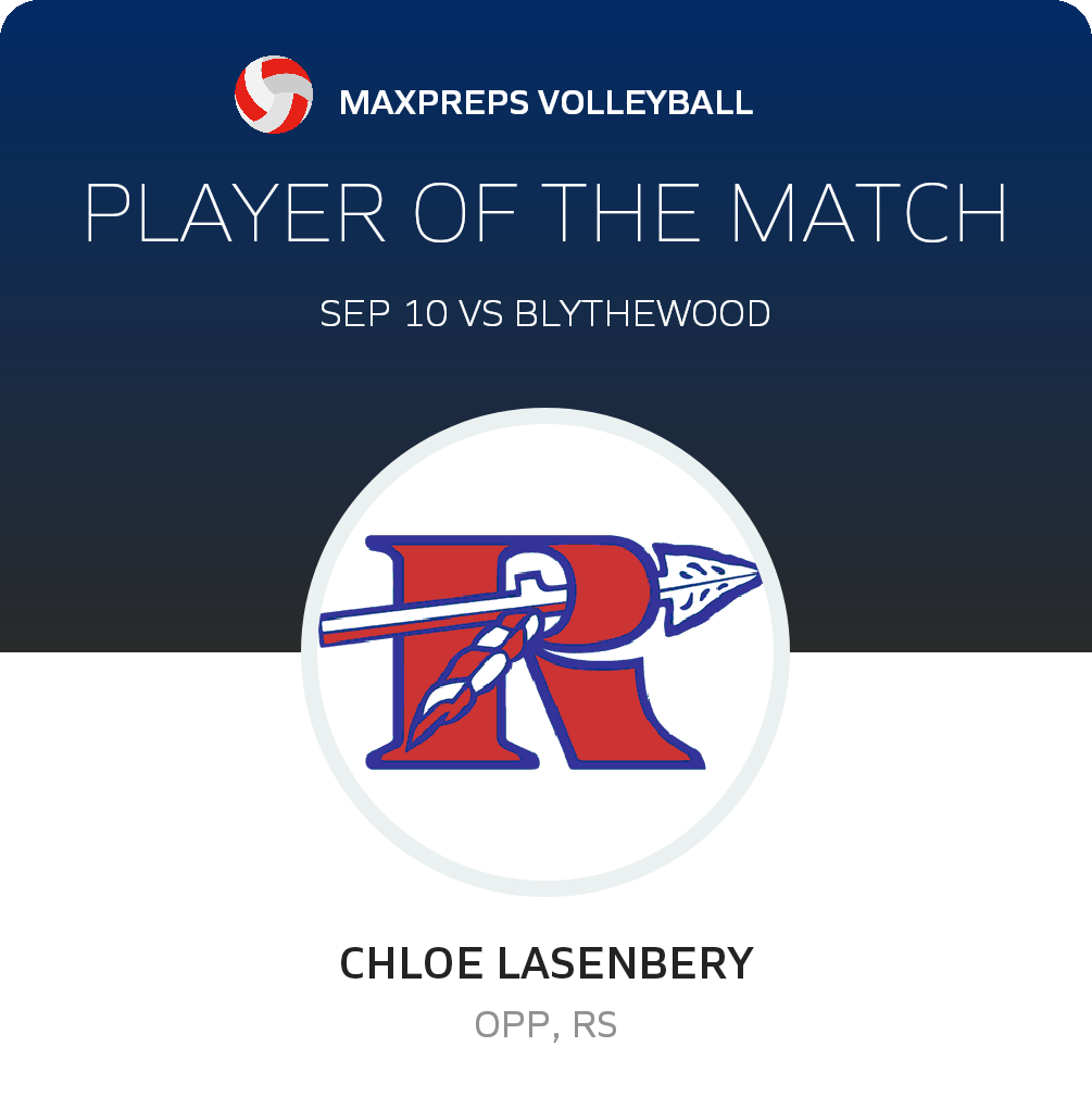 Congratulations to #13 Chloe Lasenbery for being selected the Riverside Volleyball Player of the Match.