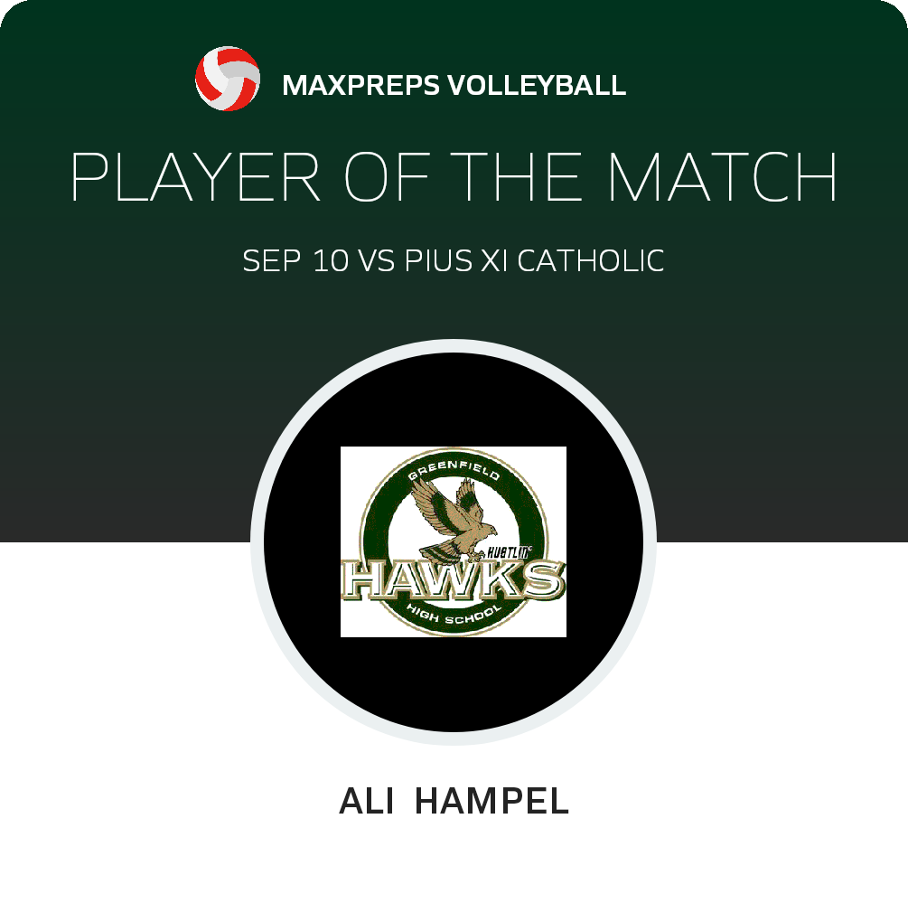 September 10, 2022: Greenfield, WI 53220 Pius XI Catholic Popes (Milwaukee, WI) backers left the game in high spirits Saturday as they observed their volleyball squad top the host Greenfield Hustlin' Hawks (Greenfield, WI), 2-0 in a non-league match.