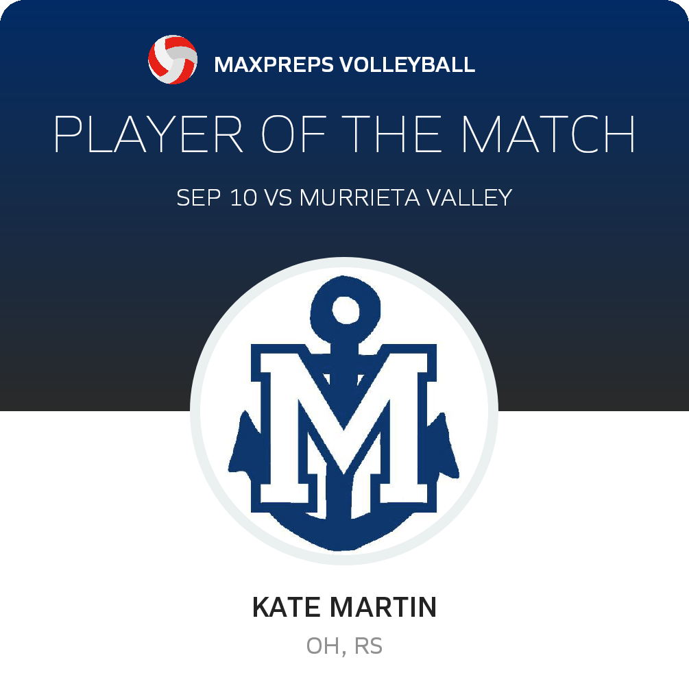Congratulations to #10 Kate Martin for being selected the Marymount Volleyball Player of the Match.