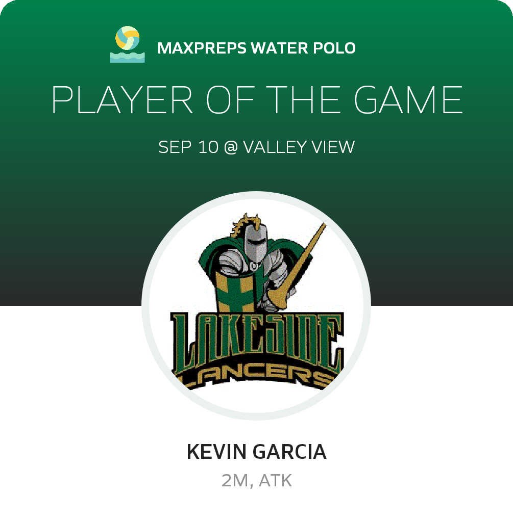 Congratulations to #4 Kevin Garcia for being selected the Lakeside Water Polo Player of the Game.