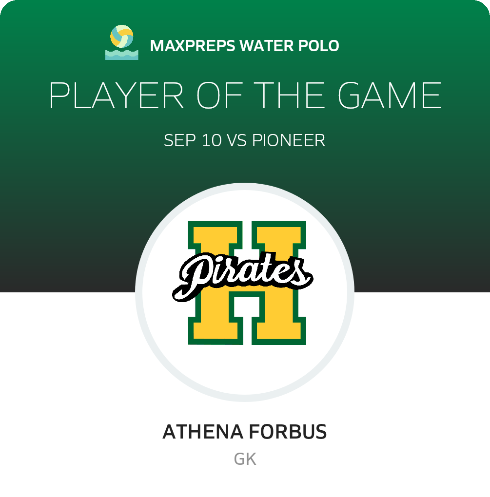 Congratulations to #1 Athena Forbus for being selected the Harbor Girls JV Water Polo Player of the Game.