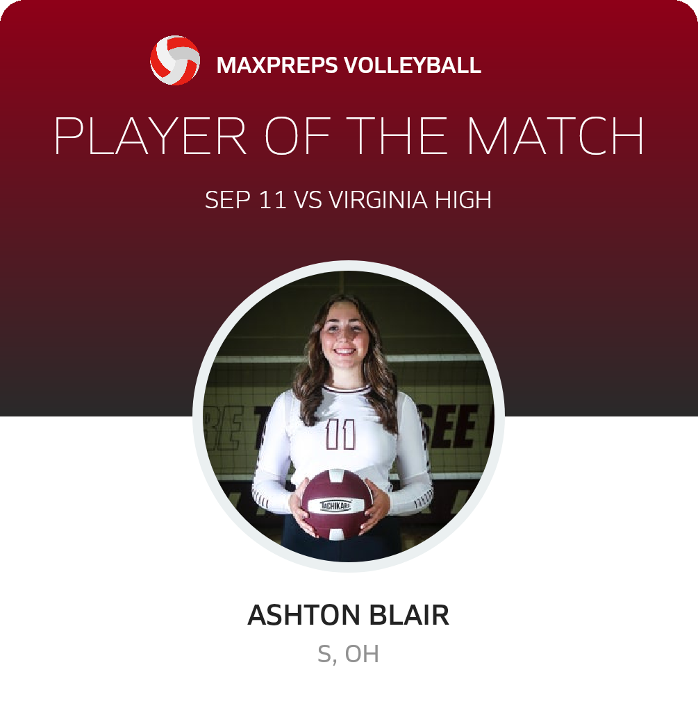 Congratulations to #11 Ashton Blair for being selected the Tennessee Volleyball Player of the Match.