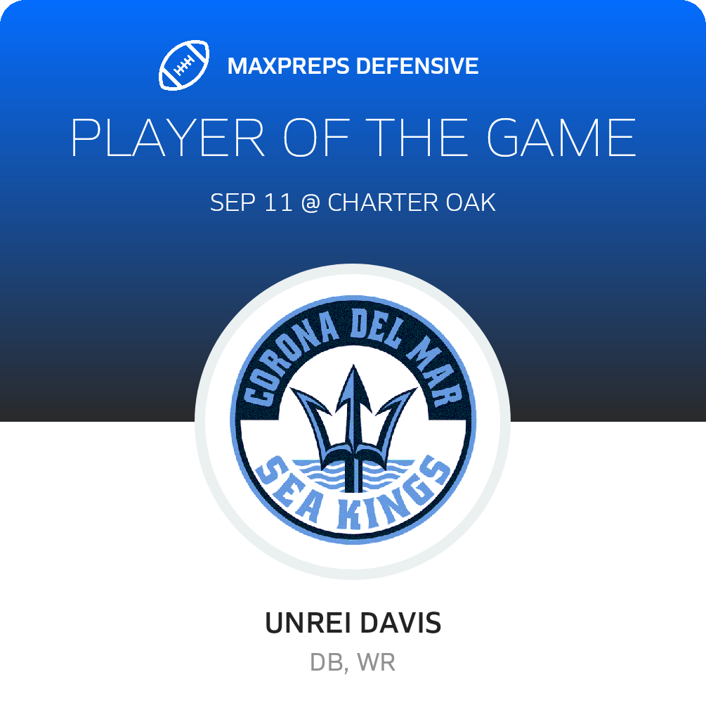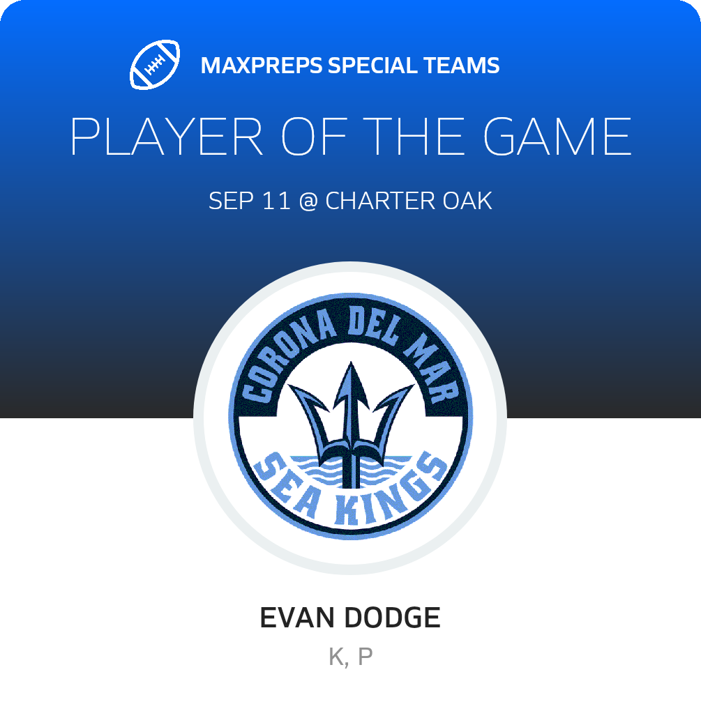 September 11, 2025: Covina, CA 91723 The Corona del Mar Sea Kings walloped the host Charter Oak Chargers football team by a score of 49-7 in Thursday's non-league challenge.