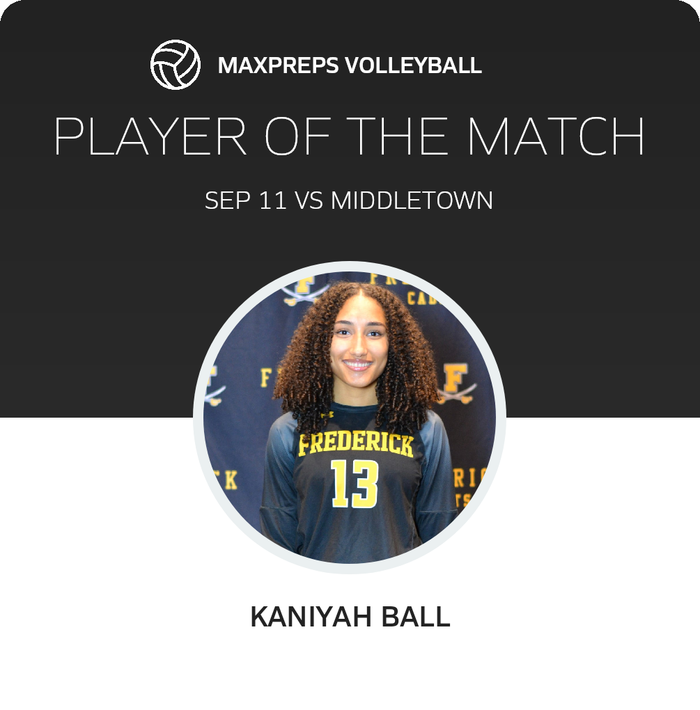 Congratulations to #13 Kaniyah Ball for being selected the Frederick Volleyball Player of the Match.