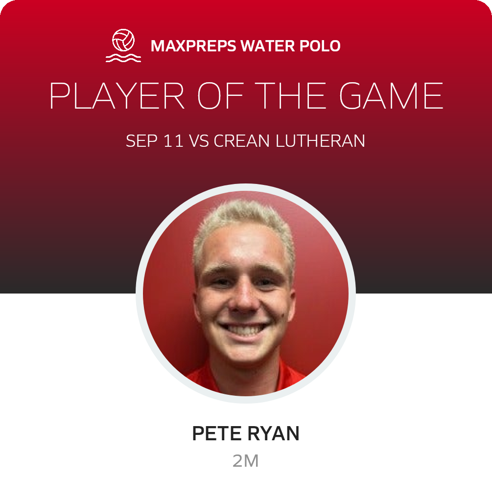 Congratulations to #6 Pete Ryan for being selected the Mater Dei Water Polo Player of the Game.