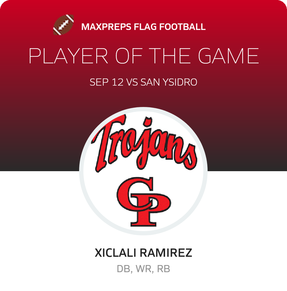 The San Ysidro (San Diego, CA) varsity flag football team lost Tuesday's neutral non-conference game against Castle Park (Chula Vista, CA) by a score of 18-6.