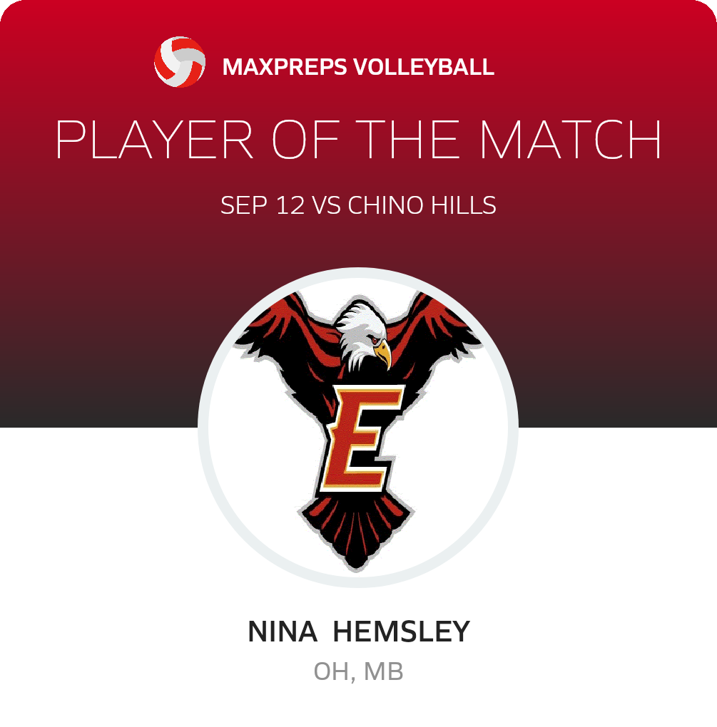With the win, Etiwanda upgrades its record to 15-4 on the year. The Eagles travel to Rancho Cucamonga (Rancho Cucamonga, CA) to play the Cougars in a Baseline bout on Thursday, September 14. The Cougars go into the bout with a record of 9-5. Rancho Cucamonga won 3-0 in their recent league bout against Los Osos (Rancho Cucamonga, CA)