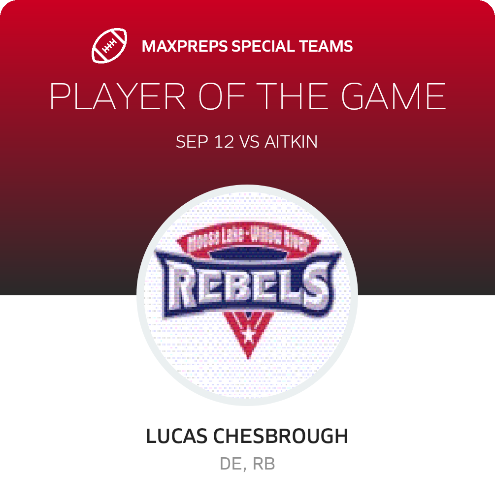 With the win, Moose Lake/Willow River advances its record to 3-0 on the season. The Rebels travel to Hinckley-Finlayson (Hinckley, MN) to encounter the Jaguars in a Northeast - Blue contest on Friday, September 19. The Jaguars enter the contest with a record of 1-2. Hinckley-Finlayson lost 44-6 in their recent league contest against Mesabi East (Aurora, MN)