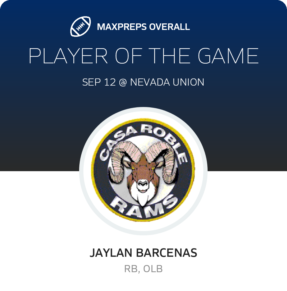 September 12, 2025: Grass Valley, CA 95945 The Casa Roble Rams football squad scored 39 points and limited the host Nevada Union Miners to 14 in the Rams non-league triumph on Friday.