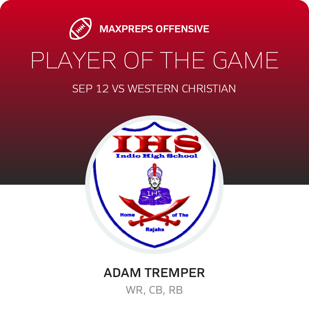 September 12, 2025: Indio, CA 92201 Western Christian Fighting Lancers (Upland, CA) followers went home pleased Friday as they saw their football team triumph over the host Indio Rajahs (Indio, CA), 47-6 in a non-league battle.
