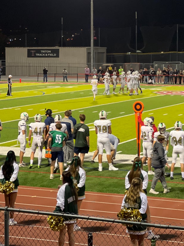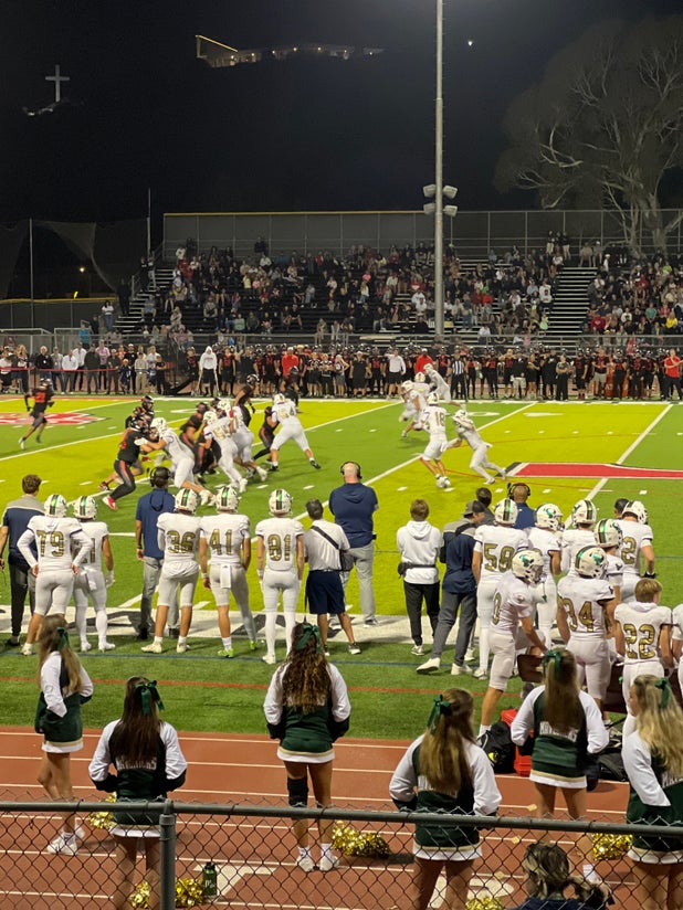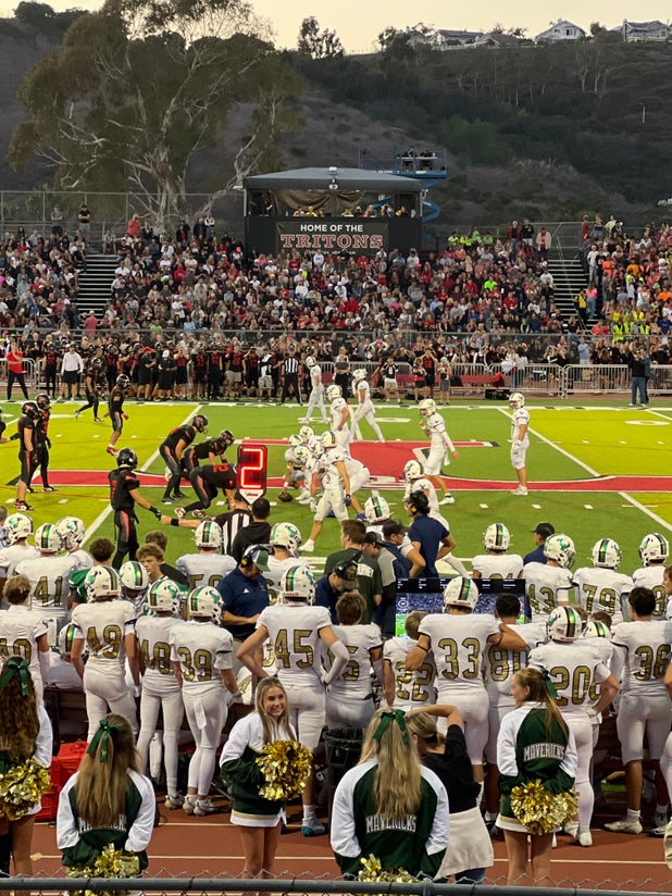 September 12, 2025: San Clemente, CA 92673 The crowd at Friday's non-league contest between the La Costa Canyon Mavericks (Carlsbad, CA) and the host San Clemente Tritons (San Clemente, CA), witnessed La Costa Canyon's football squad knock off San Clemente by a tally of 28-14.
