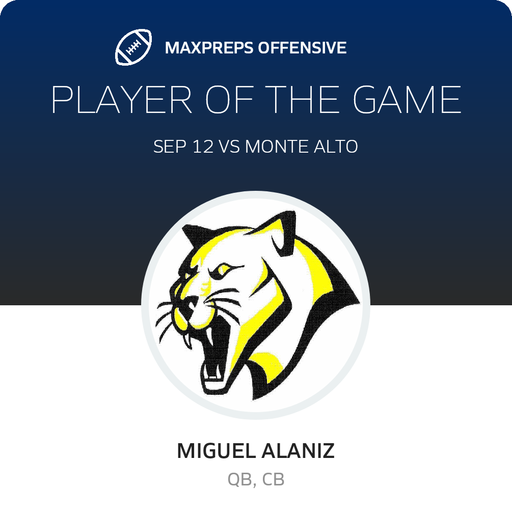 September 12, 2025: Santa Maria, TX 78592 In Friday's non-league game, the Santa Maria Cougars (Santa Maria, TX) football team triumphed over the visiting Monte Alto Blue Devil (Monte Alto, TX), by a tally of 60-0.